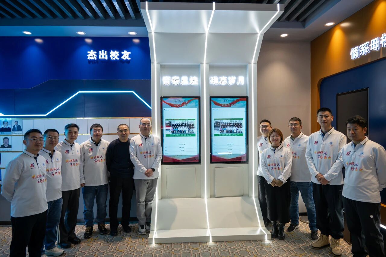 史馆回声溯壮游,青春刻痕入春秋。玻璃展柜里,时光被切成薄片——充满年代感的书本、印章晕成霞色的毕业证书。电子屏流淌着年份的河流,几十双眼睛看向光芒中的自己,他们与十八岁的自己并肩站立,在虚拟与现实重叠的刹那,校史馆变成了时空的中继站。