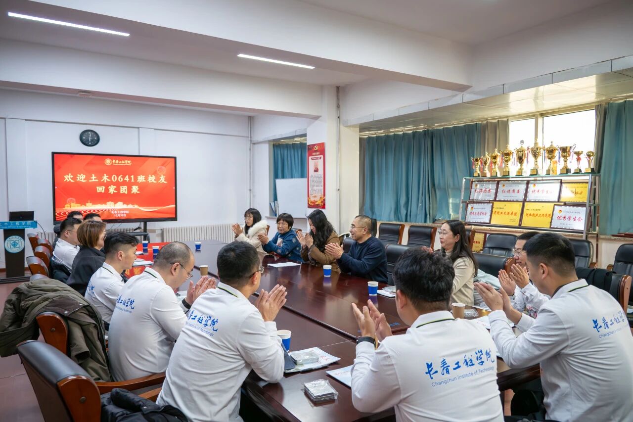 一席冬阳透户暖,半卷浮生过午檐。座谈会在土木工程学院会议室召开,阳光透过高窗,在长桌上投下菱形的光斑。土木工程学院领导致欢迎词,并向校友们介绍了学院近年来在学科建设、人才培养、科研创新等方面取得的跨越式发展,描绘了学院未来发展的蓝图。随后校友代表们依次发言,他们讲述毕业后的成长史,将十五年来的故事娓娓道来,宛如翻开一册册厚重的青春纪念簿,将座谈会的气氛推向情感的高潮。