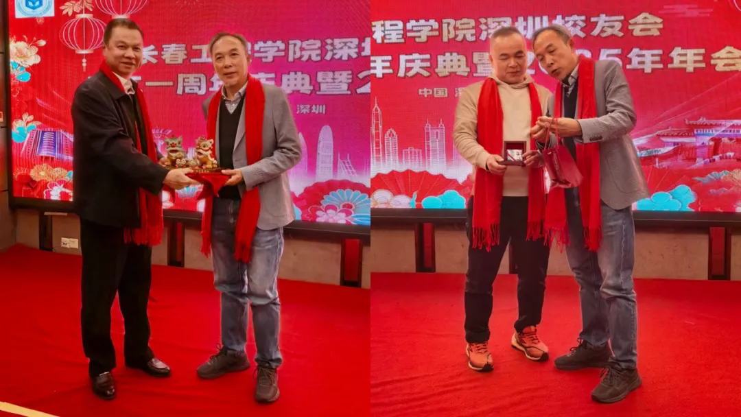 活动现场,广东校友会会长刘志坚校友代表兄弟校友会向深圳校友会赠送寓意吉祥的醒狮礼品,并送上诚挚祝福;谷明旺会长向清远校友会会长沈炜南校友赠送了纪念深圳校友会成立的定制银章,彰显兄弟校友会之间的深厚情谊。